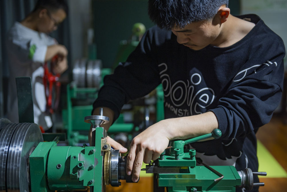 2013年的一个偶尔时机,程育财与玑雕琢花结缘,被这种精巧的斑纹图画深深招引,便决计投入到这项工艺的研究之中。他用了三年的时间,阅历了无数次的失利,总算造出了较为完善的玑雕琢花机器。现在他作业室里的机器零件90%以上都是他带着学徒亲手做出来的。